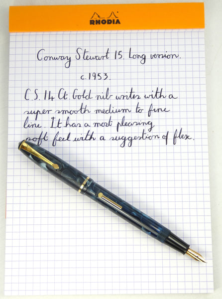 With the cap posted for use the pen has a length of 15.7 cm., one of the larger Conway Stewart pens of this era. The long Conway Stewart 15 is not easy to find and is very collectable.