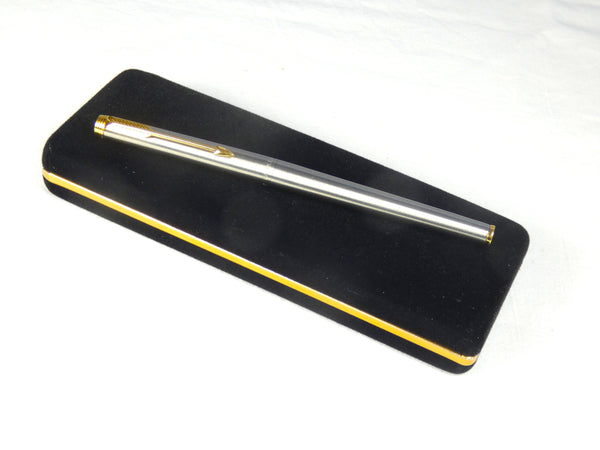 The original advertisements from the 70’s stated “One nib. One point. Two ways to write.” This is because the pen is designed to be used “right side up” and “upside down” with two different line widths.  This pen has the fine/broad combination, it was also offered with exra fine/medium.