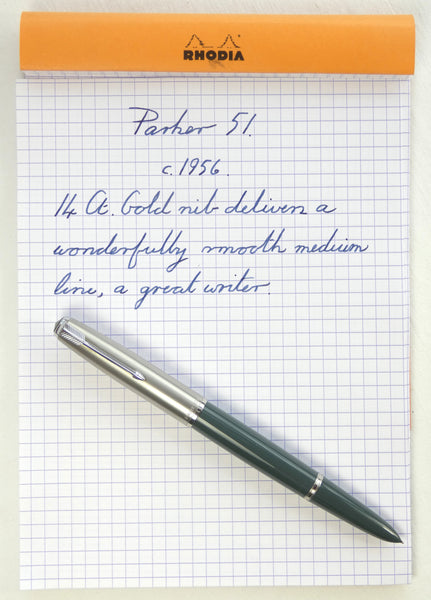 The 51 is often described as 'the best pen ever made', it was often copied but never equalled.  This is an outstanding English example, it has a showroom Navy Grey finish and a ding free 'Lustralloy' cap.