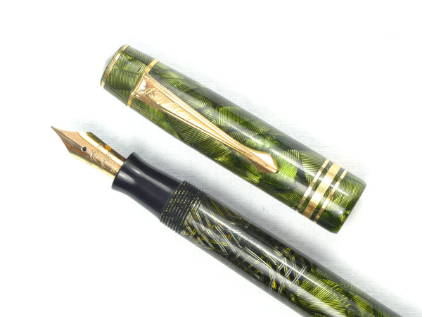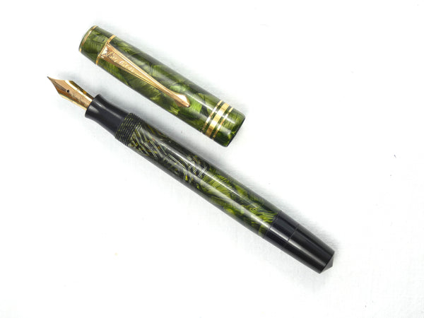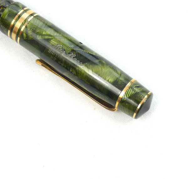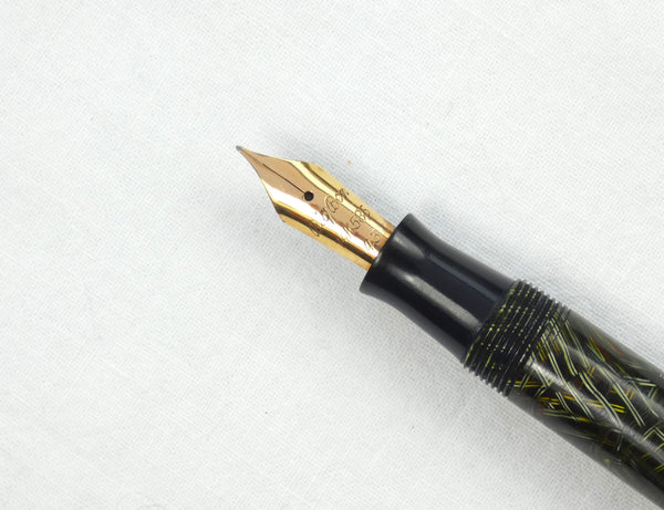 The pen has been restored and is in excellent working condition. The gilling system works well and the 14Ct. Gold Big Ben No. 43 nib writes with a smooth, medium line, perhaps a little on the fine side.