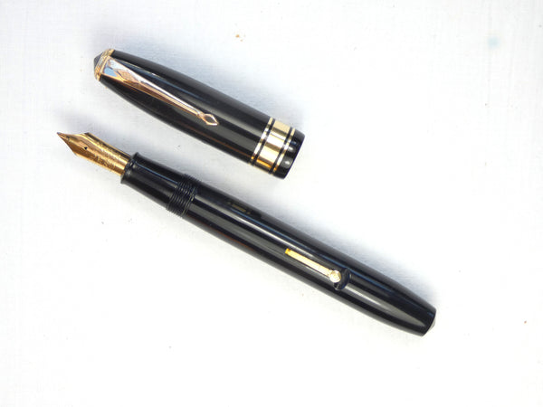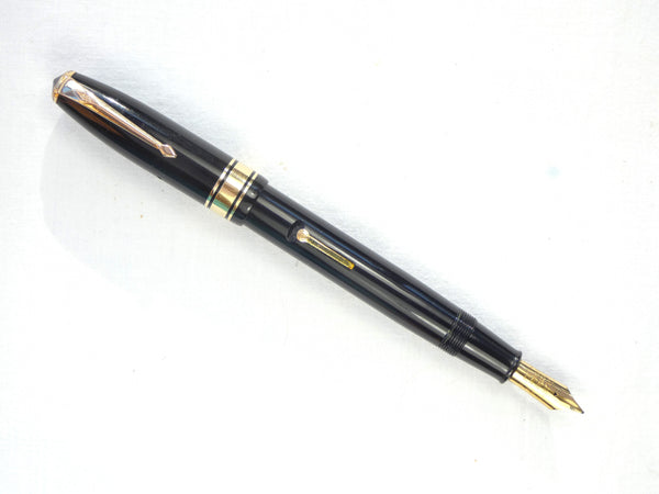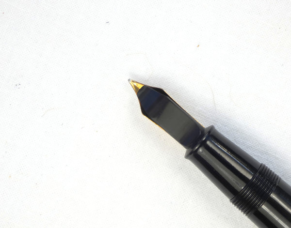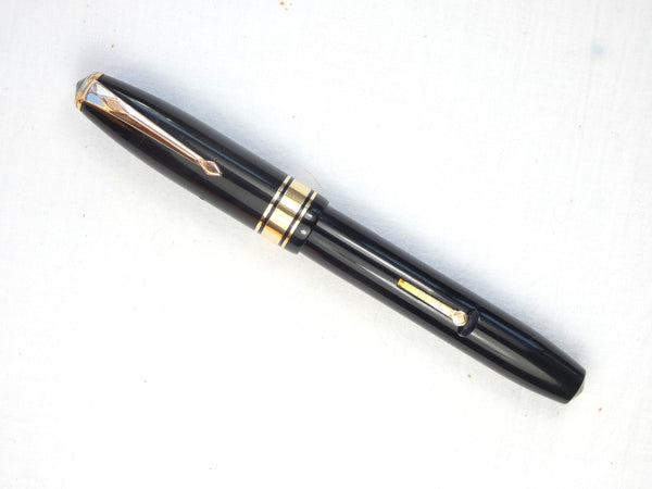 The pen has an excellent surface and, the black enamel on the cap stud is still intact, and, although there is some slight pitting on the lever edge, the Gold filling has held up very well.  The CS100 was made with either one, three, or no Gold filled cap rings, this pen is the more desirable triple banded version with one wide and two narrow bands.