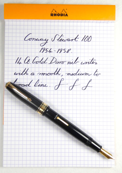 The Conway Stewart 100 was the largest, fattest, and most prestigious of all the post war Conway pens.  It was produced between 1954 and 1958 and was only made in black.