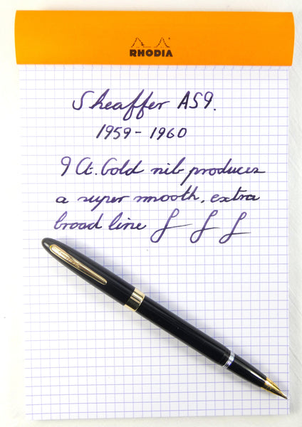 The Sheaffer Imperial AS9, made only in 1959 and 1960, was adveritsed as an 'Imperial', the first pen of that name, and bearing little resemblance to the familiar 'PFM shaped' Imperials that followed later in 1960.