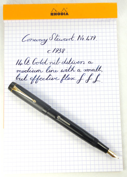 The filling system was overhauled and a new ink sac fitted, as the original had hardened with age. It takes up a good volume of ink and the 14 Ct. Gold Conway Stewart nib delivers a smooth line with a nice flex.